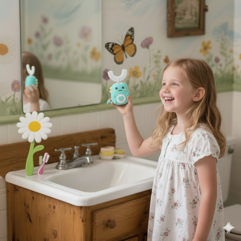 • Apprentissage ludique — Son design sensoriel et amusant motive les enfants à se brosser les dents seuls, avec plaisir, tout en développant leur autonomie et leur bonne hygiène.